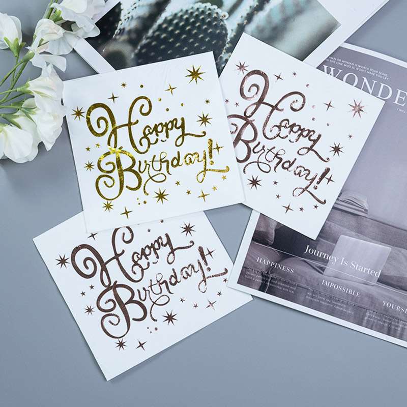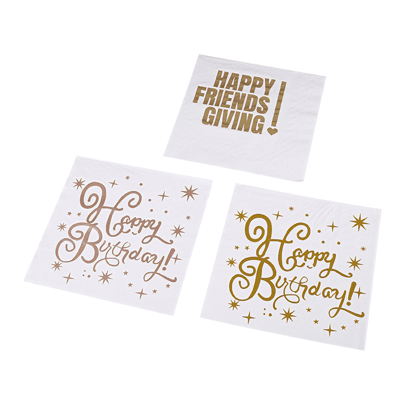 33x33 Chúc mừng sinh nhật cocktail khăn ăn 3ply giấy khăn ăn với dập nóng SJ3301
