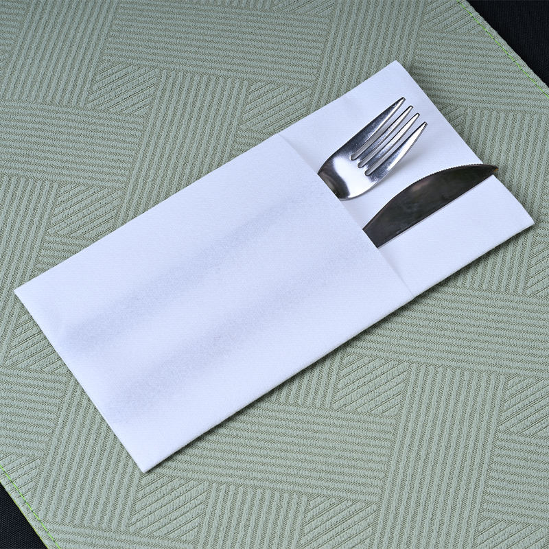 40x40 Trắng Airaid Napkins dùng một lần với túi cho dao kéo SJ1103